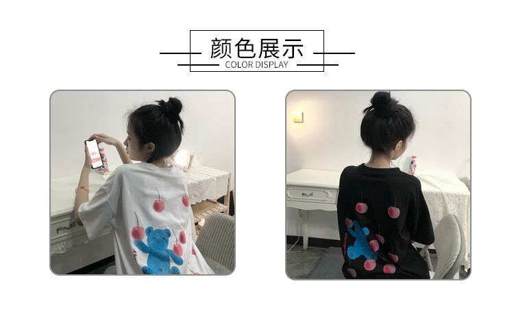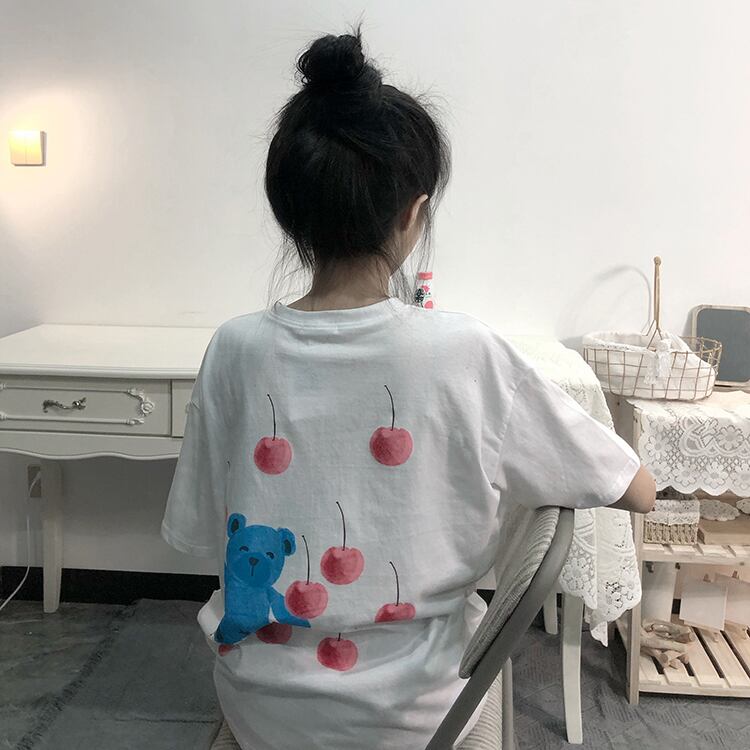 色:ホワイトチェリーベアTシャツ,ブラックチェリーベアTシャツ