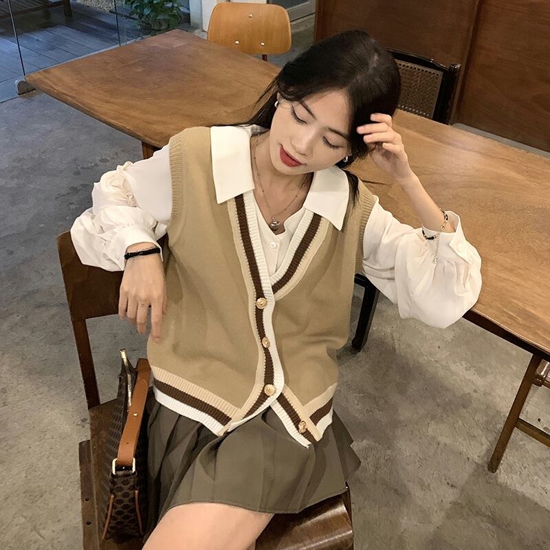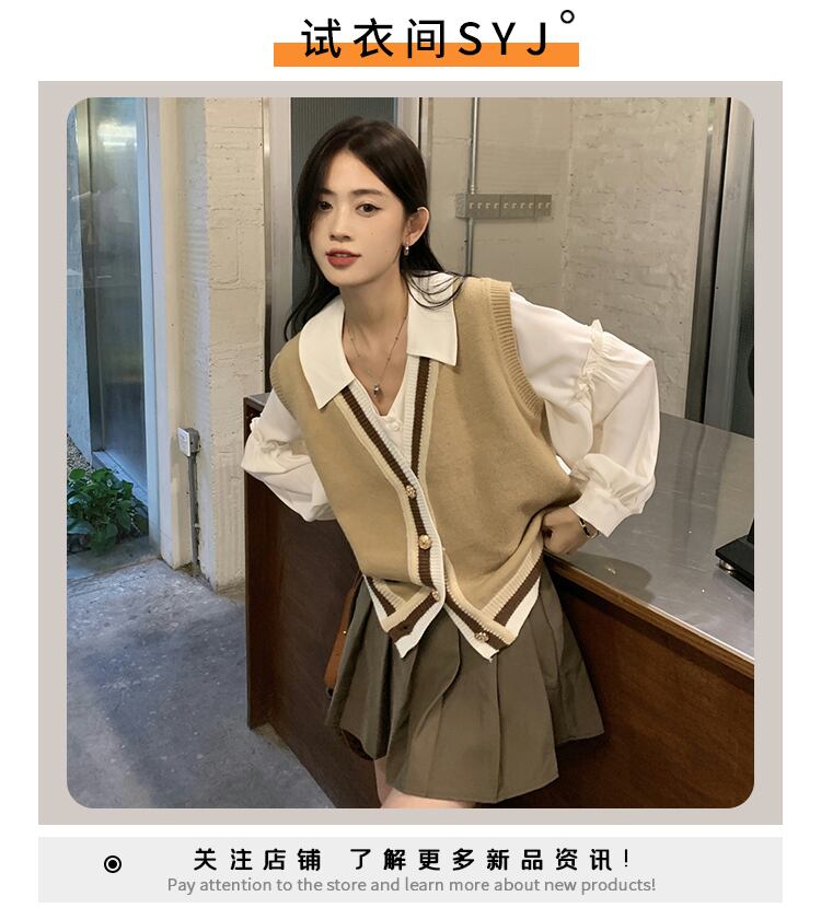 色:カーキベストワンピース,ワンピースアプリコットシャツ