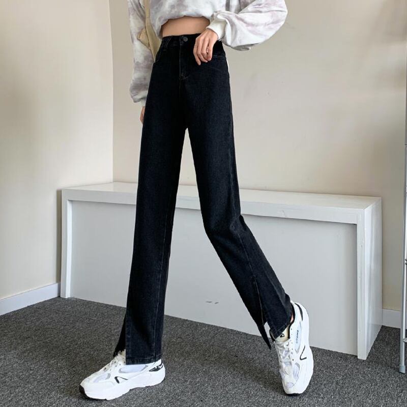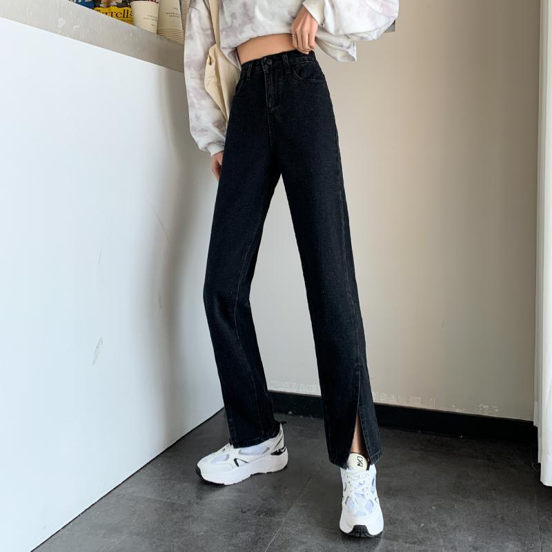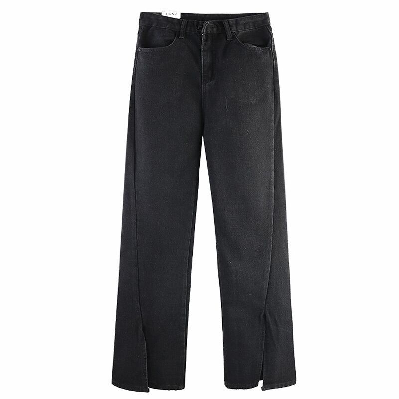 スプリングオータムブラックジーンズ ルーズウェストワイドレッグパンツ 春物 秋物 ワイドパンツ 試着室52280158394