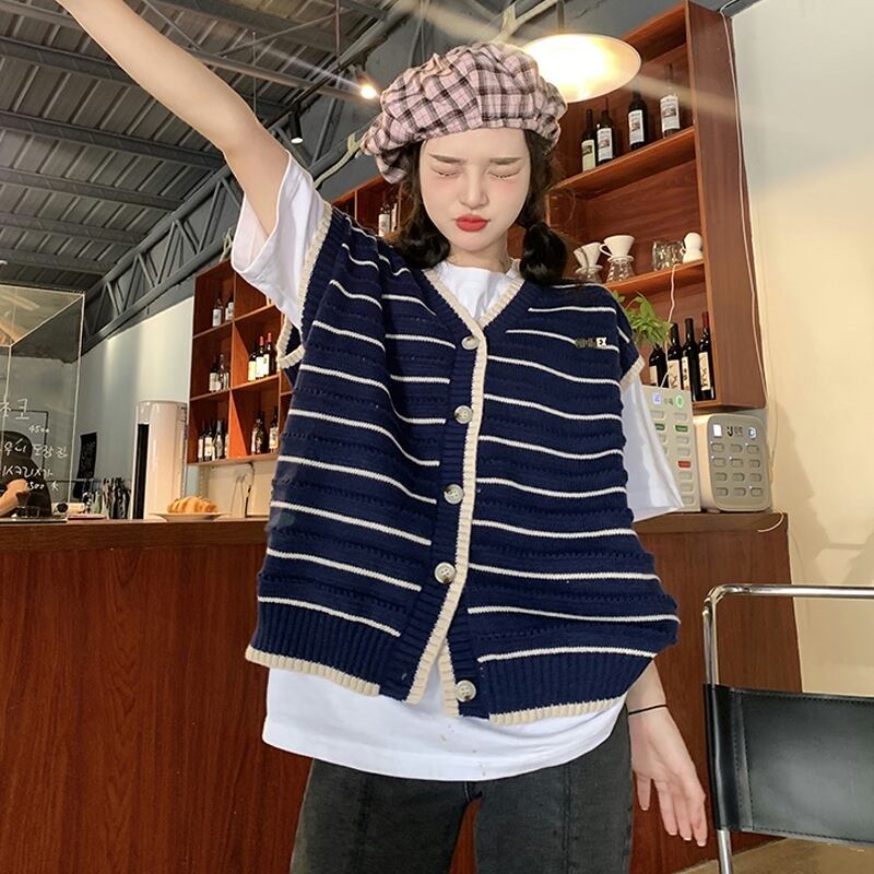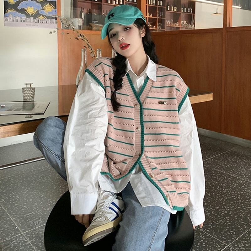 ストライプニットスプリングオータムスタンダードセーター レトロ 春物 秋物 試着室44536229367