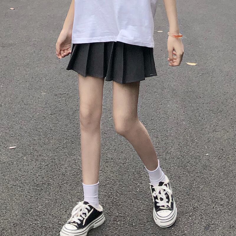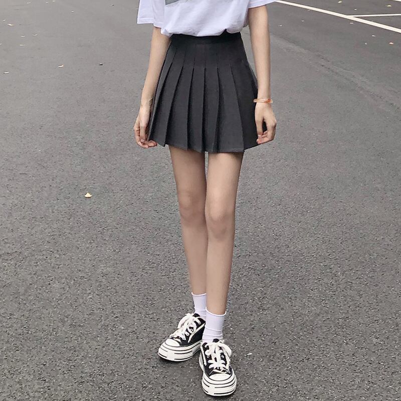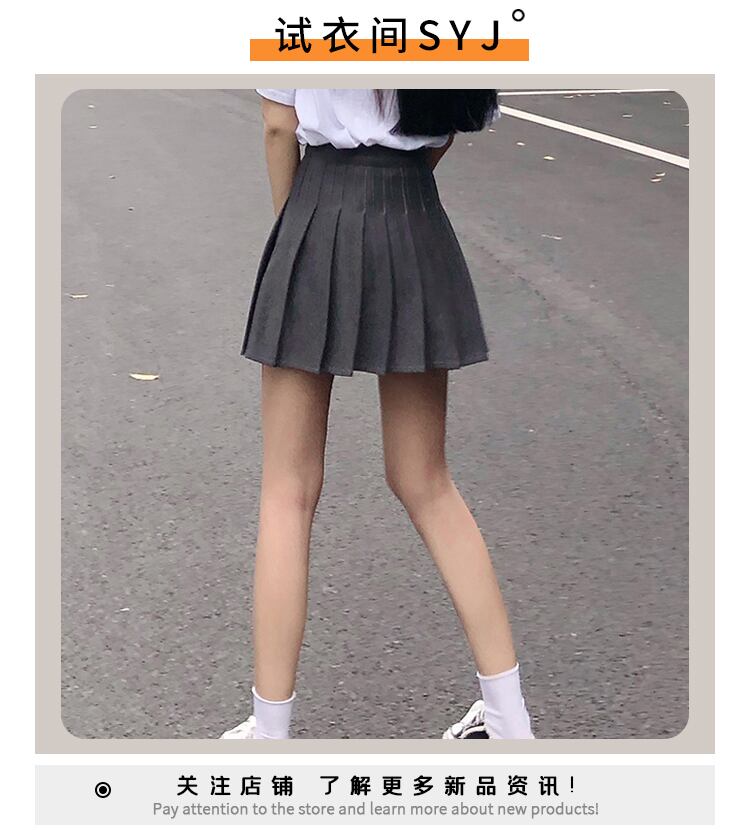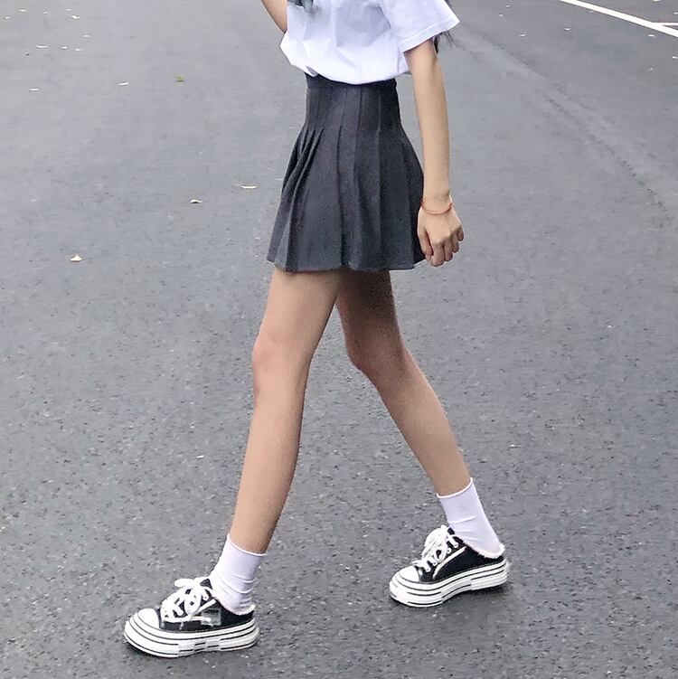 プリーツスカート サマーグレーハイウェストウェスト薄手Aラインショート 夏物 試着室83748024753