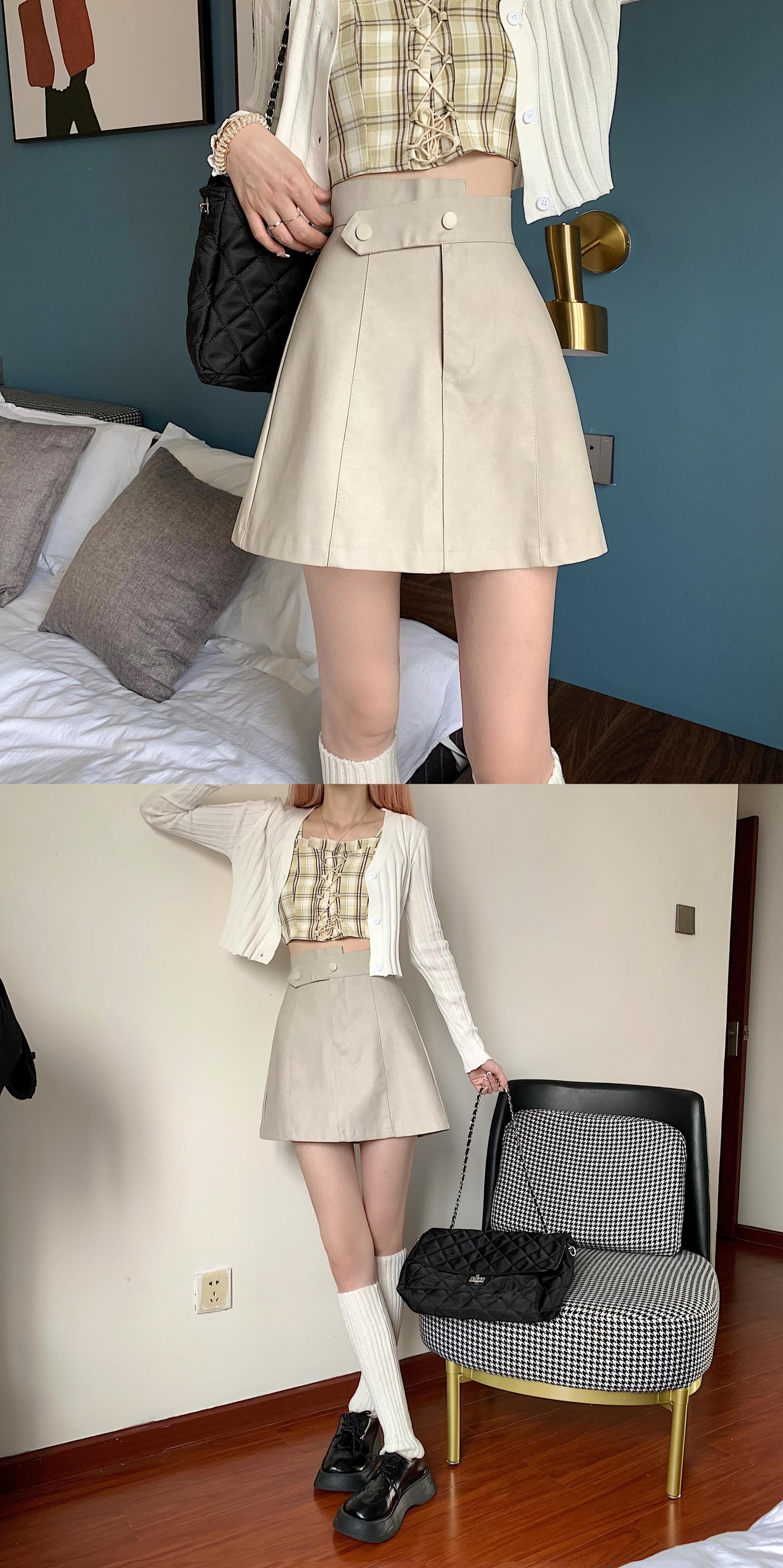 レザースカート スプリングオータムハイウェストAラインショート 春物 秋物 試着室48549043803