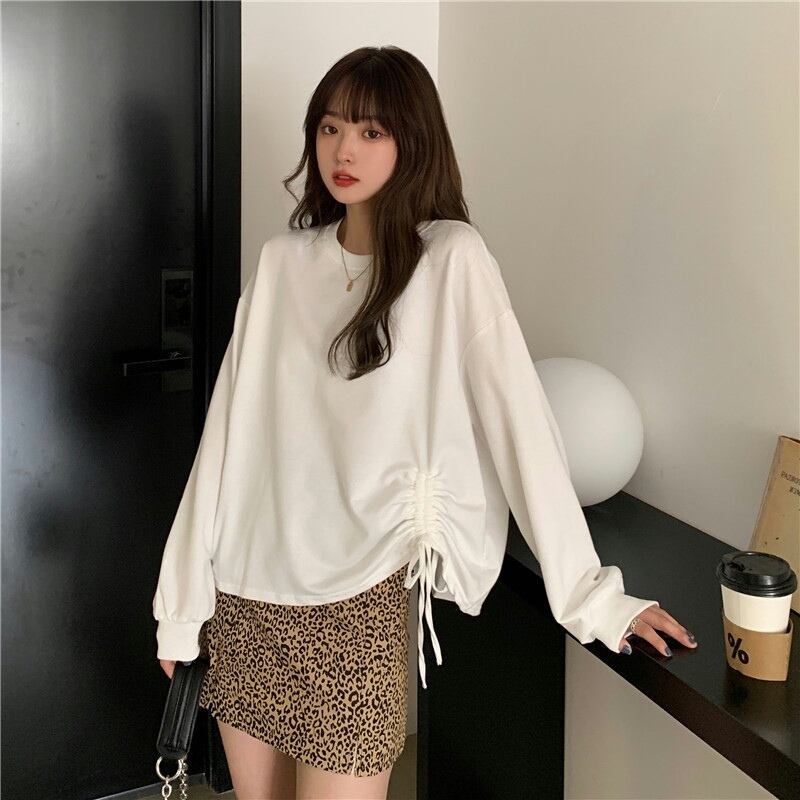 ホワイトラウンドネックセーター スプリングオータム薄手ルーズスタイル 春物 秋物 Oネック 試着室63127448045