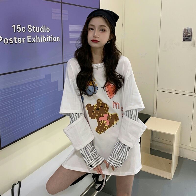 セーター スプリングオータムルーズスタイルラウンドネックトップス ロング 春物 秋物 Oネック 試着室27240579594
