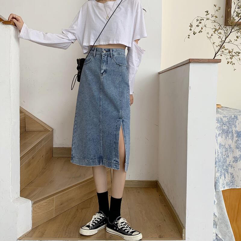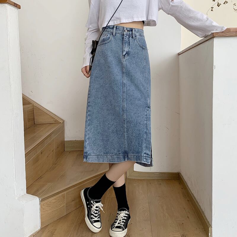 スカート ハイウェストウェストAラインスプリングオータムロング 春物 秋物 試着室11362510966