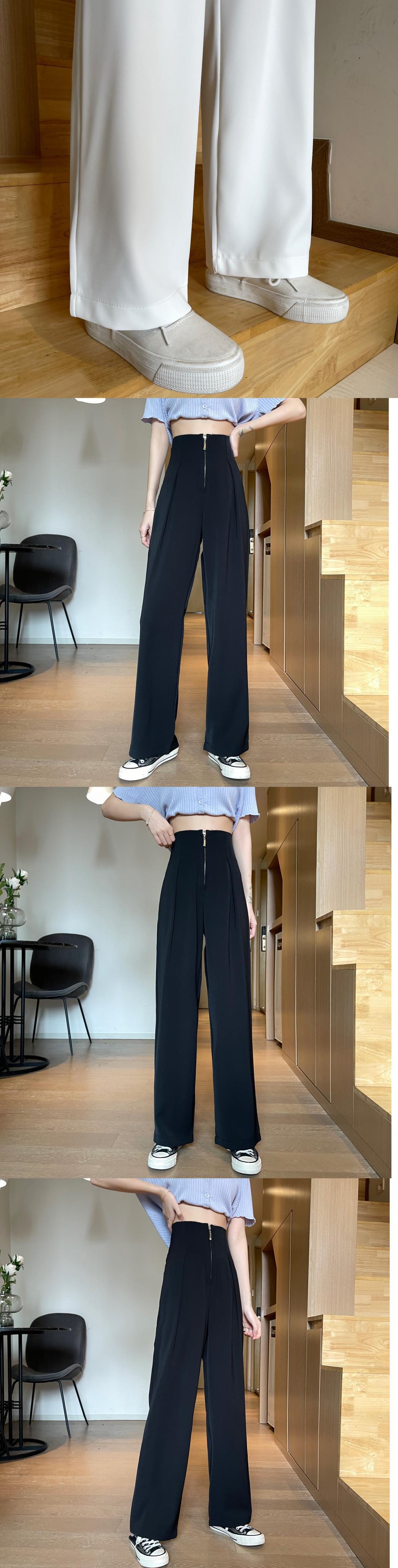 スプリングオータムブラックパンツ ハイウェストウェストルーズカジュアル 春物 秋物 試着室88136884452