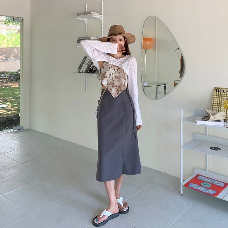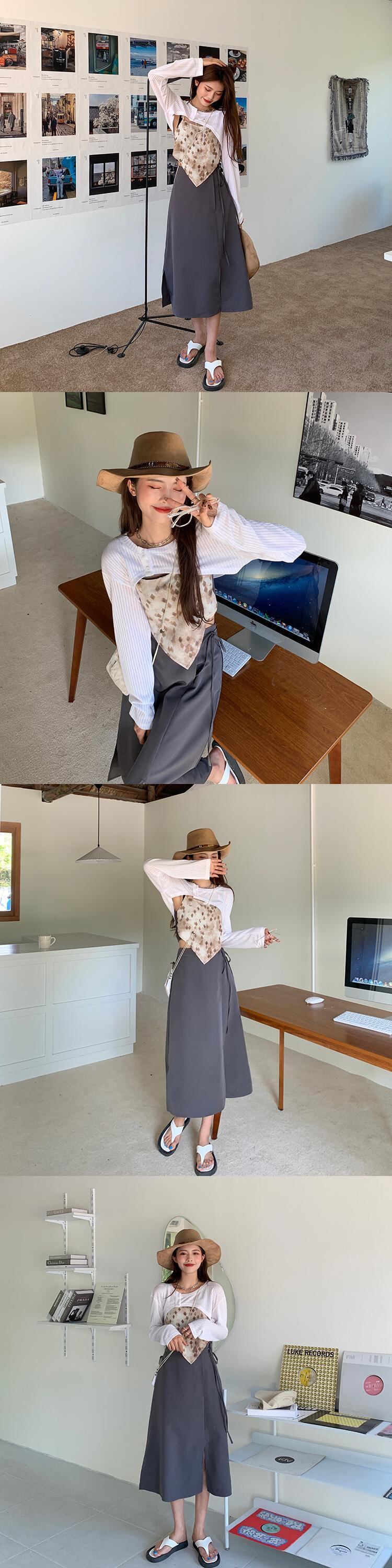 色:白いブラウスワンピース,ブラウンスリングシングルピース,グレースカートシングルピース
