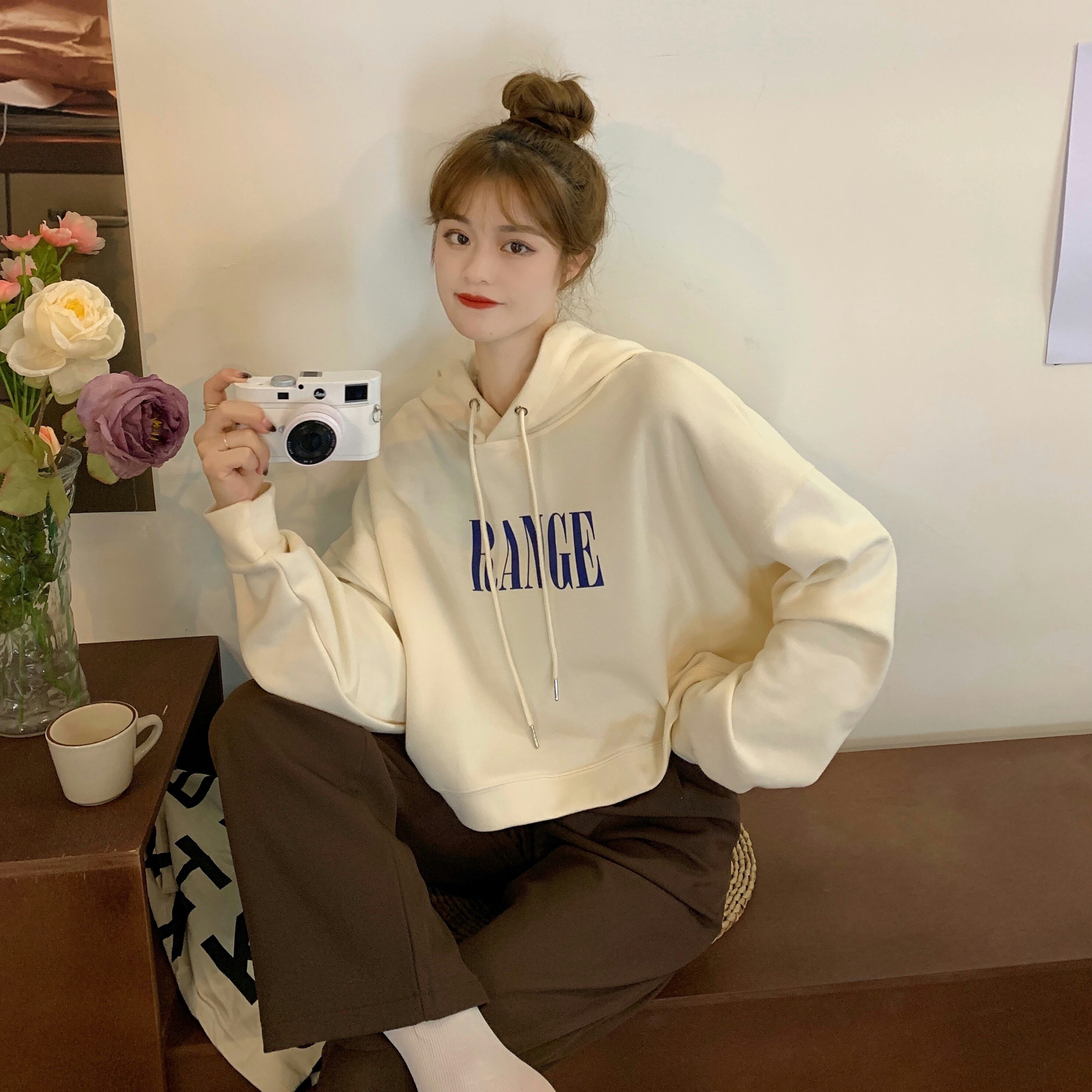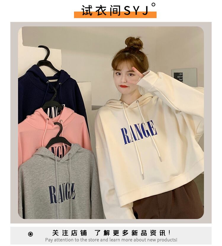 ショートフードセーター スプリングオータム薄手ルーズ 春物 秋物 試着室6174632672