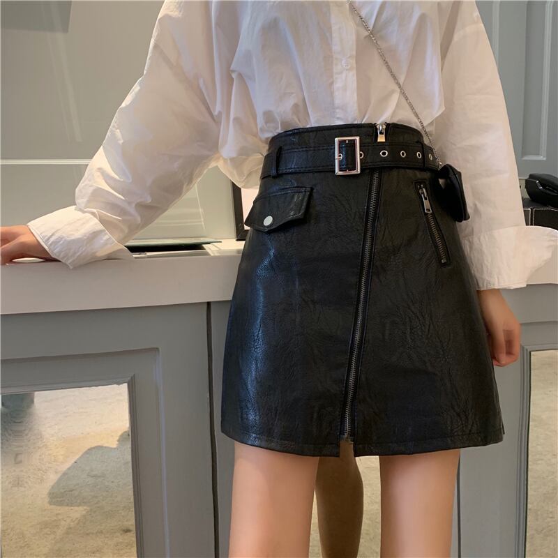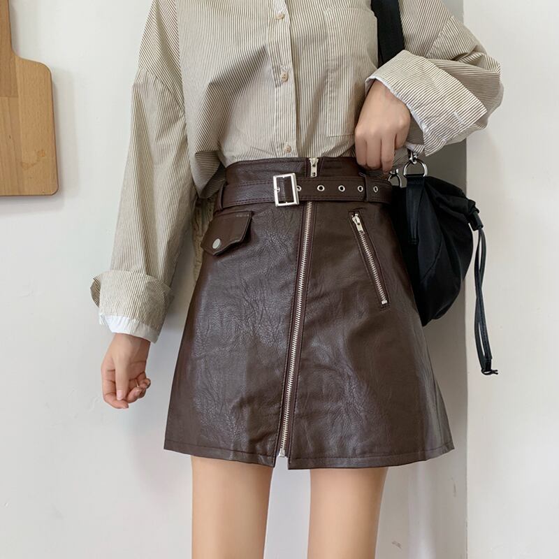 カーキスカート レザースプリングオータムハイウェストウェストスリムAライン 春物 秋物 試着室71832916348
