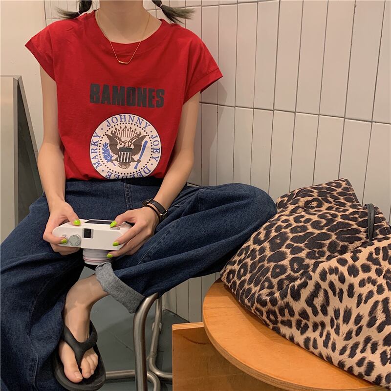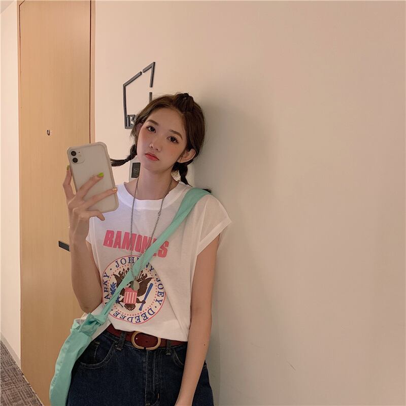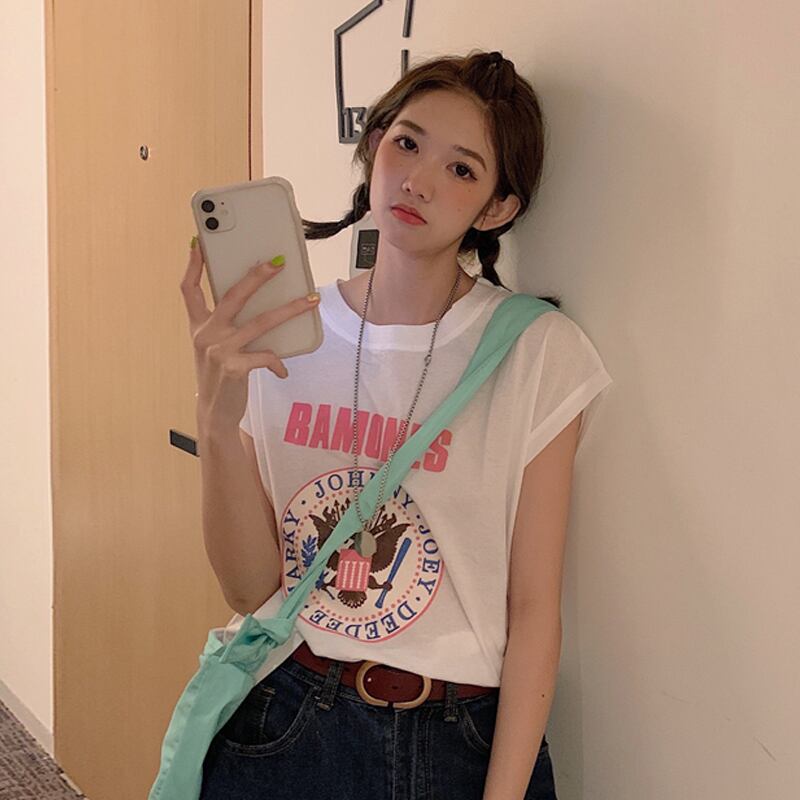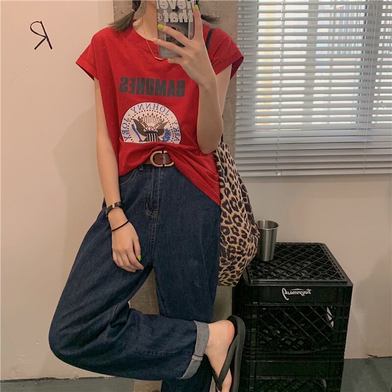 レッドノースリーブTシャツ サマースタイルルーズ 夏物 試着室85704698439