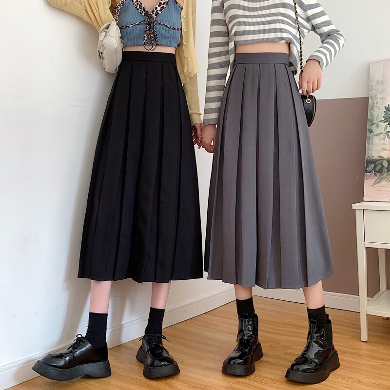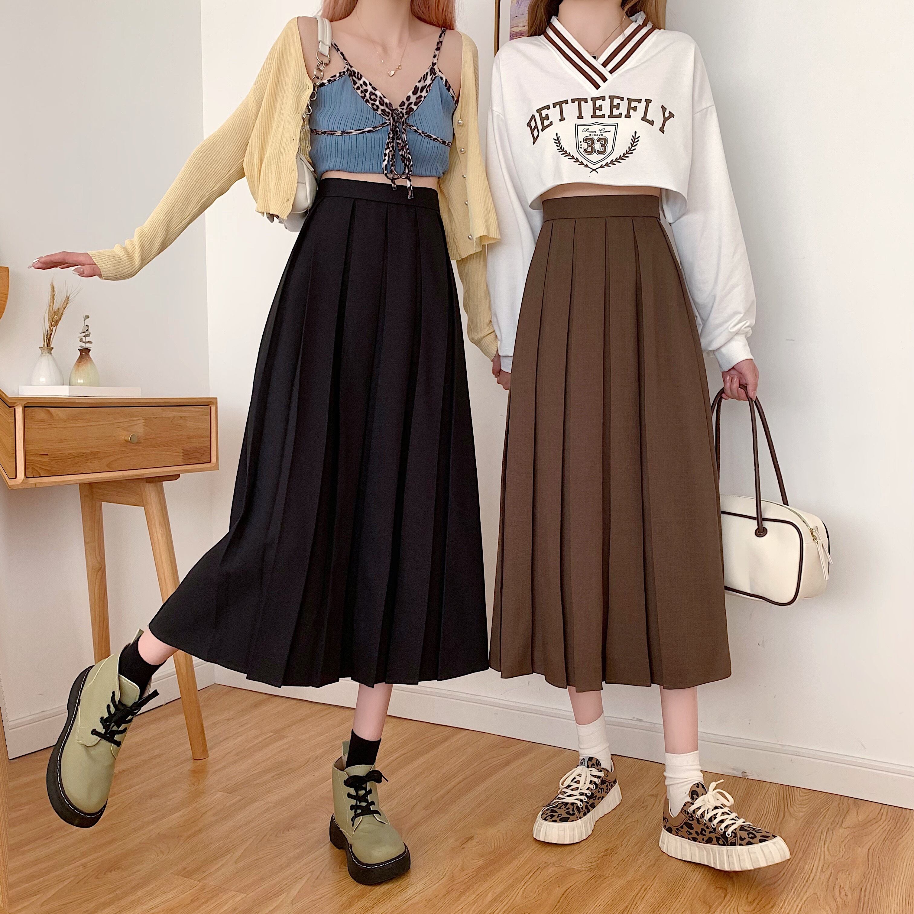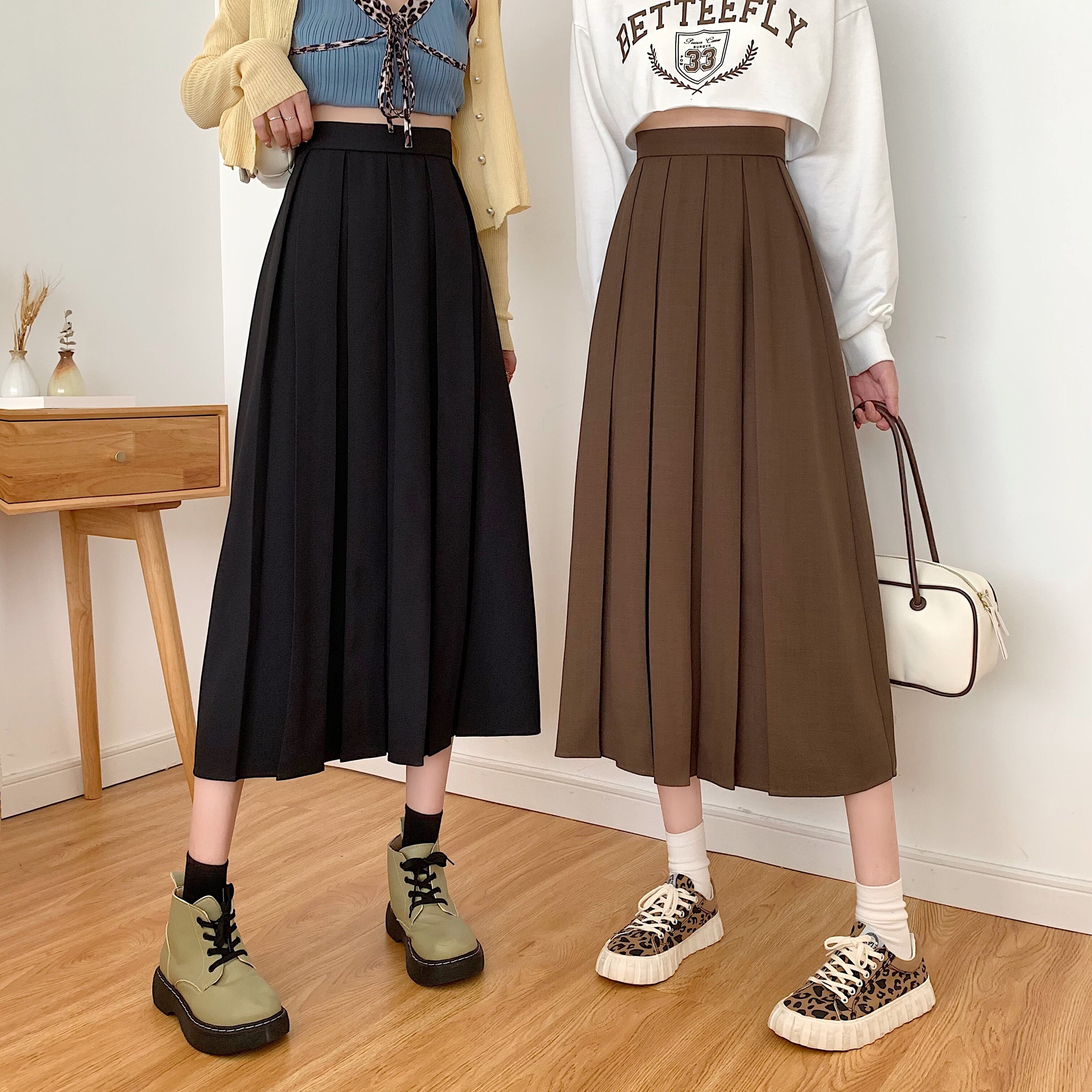 プリーツスカート Aラインスプリングオータムハイウェストウェストスタンダードロング レトロ 春物 秋物 試着室18094676919