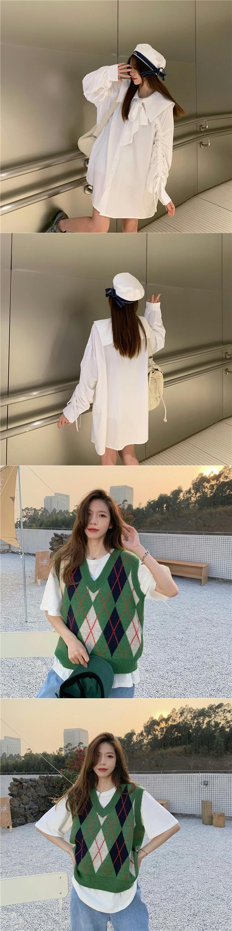 色:ブルーベストワンピース,グリーンベストワンピース,ホワイトTシャツシングルピース,シングルシャツスカート