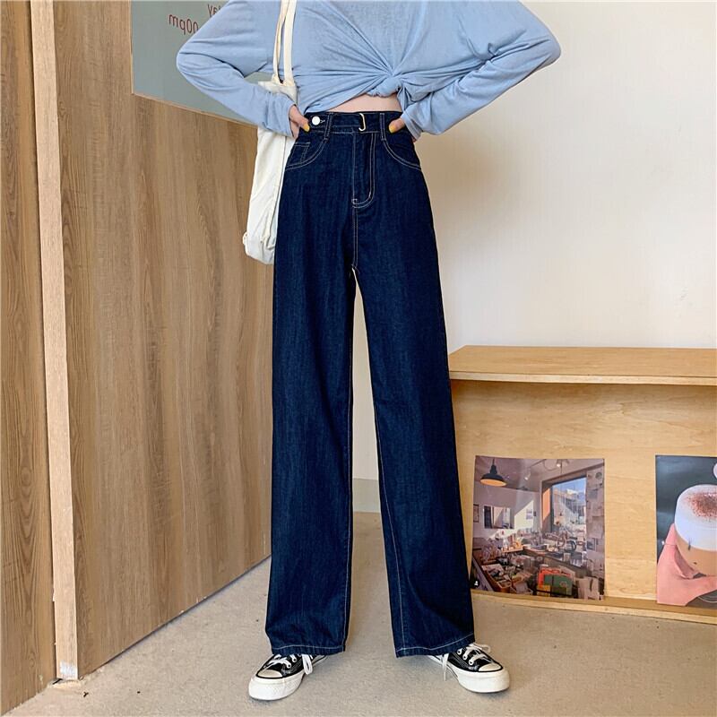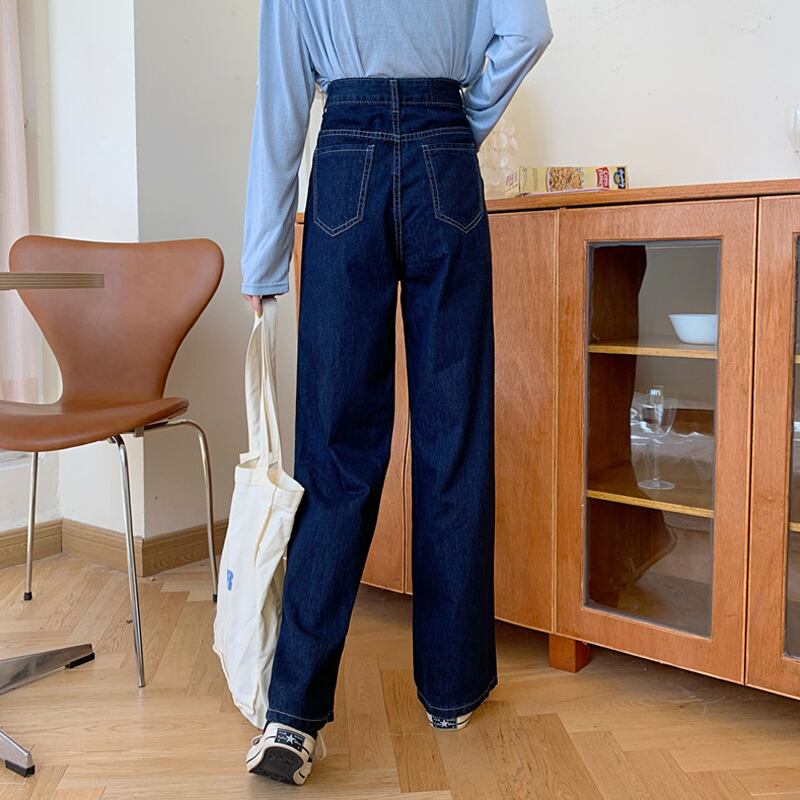 ダークブルージーンズ スプリングオータムハイウェストパンツ ルーズスタンダード レトロ 春物 秋物 試着室51920288257