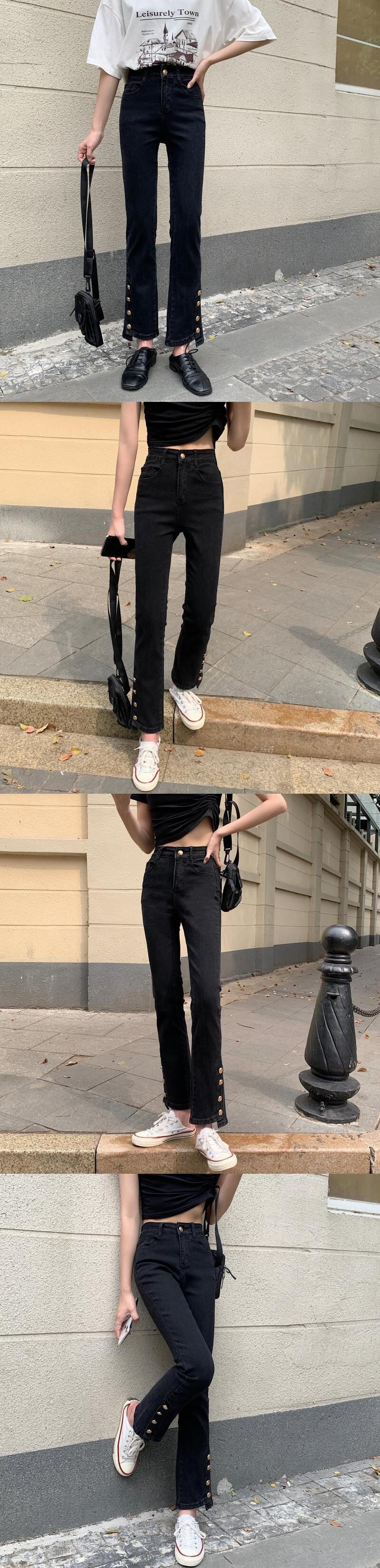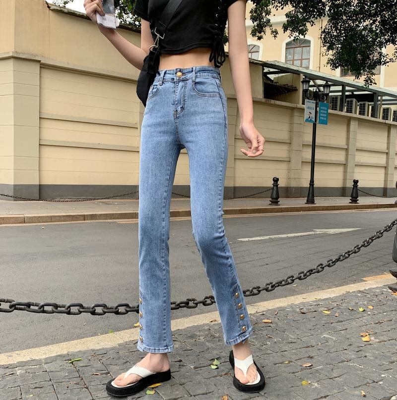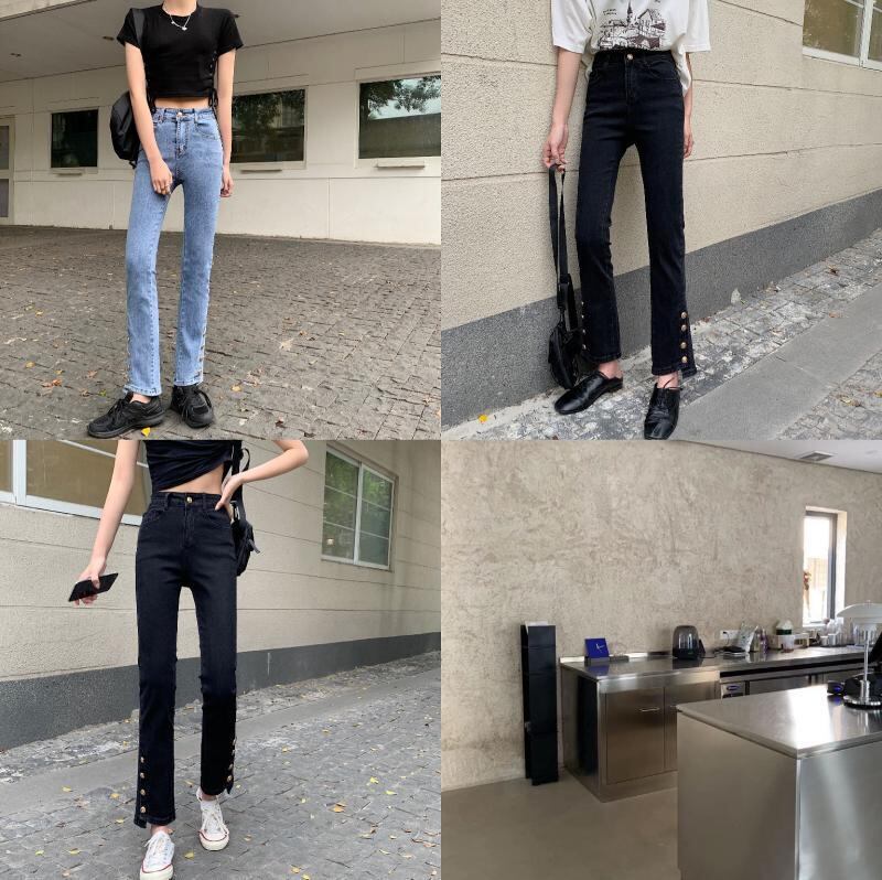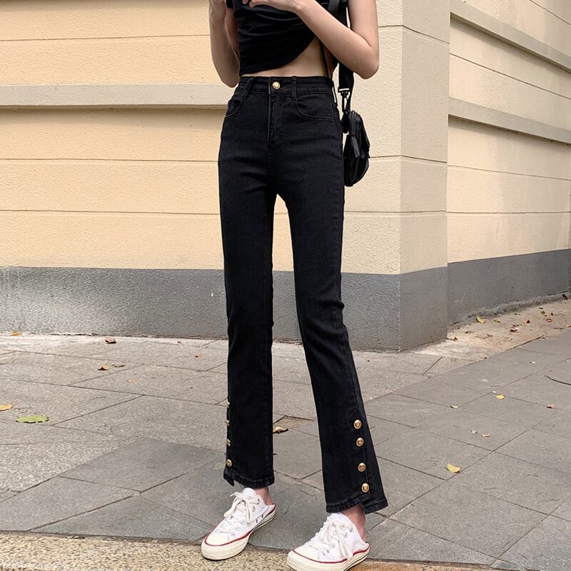 ブラックジーンズ スプリングオータムハイウェストウェストスリムスタンダードパンツ レトロ 春物 秋物 試着室83113269658