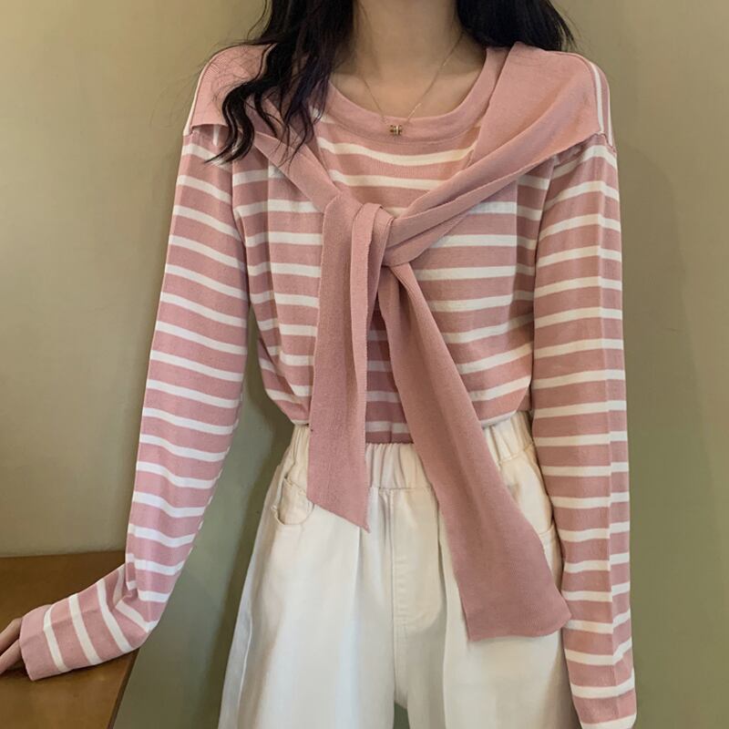 ストライプセーター スプリングオータムトップス ロング 春物 秋物 試着室48528567303