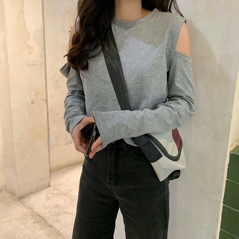 グレーストラップレスTシャツ スプリングオータム ロング 春物 秋物 試着室11020695261