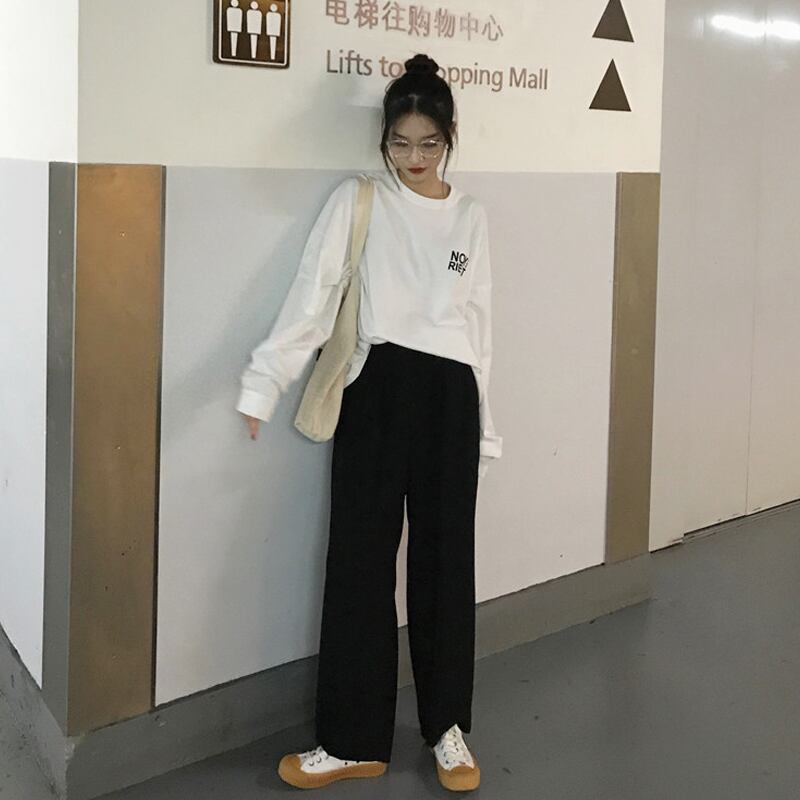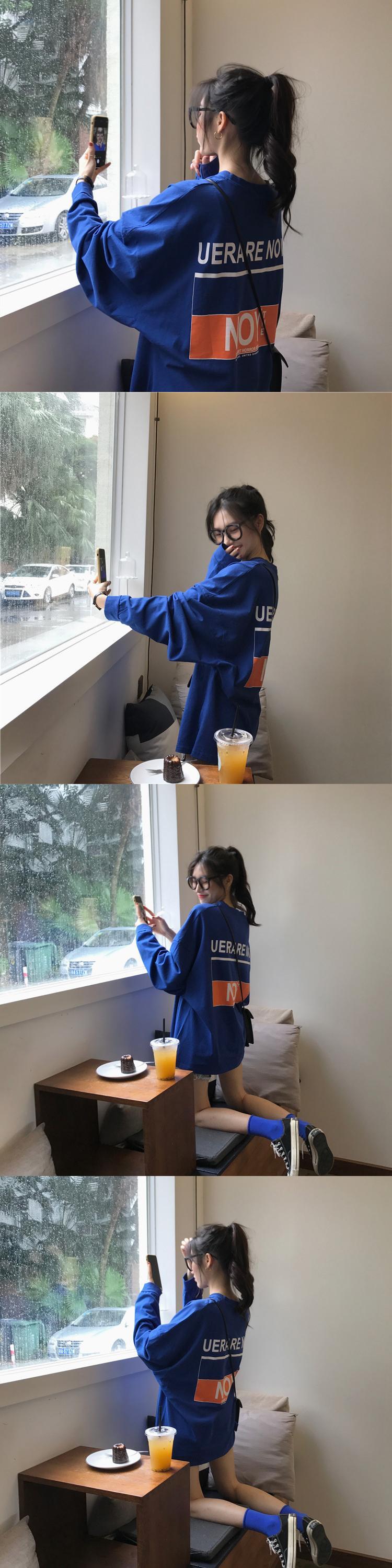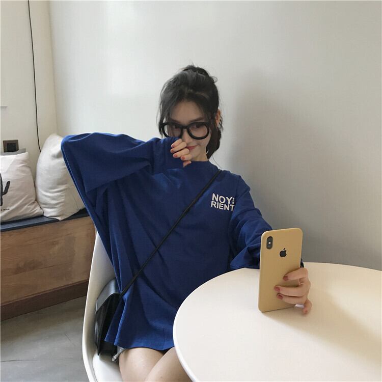 ブルーラウンドネックセーター スプリングオータム薄手ルーズスタイルトップス ロング 春物 秋物 Oネック 試着室95597010205