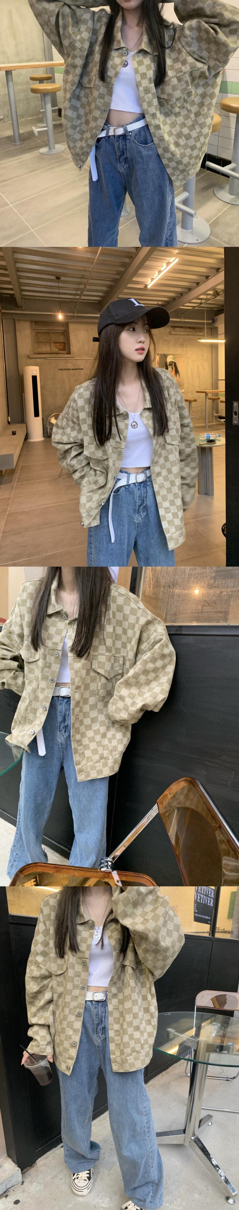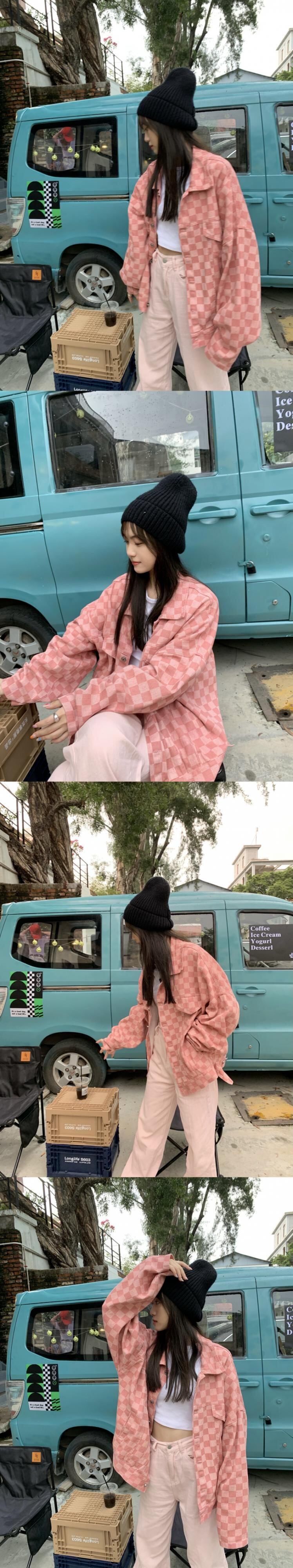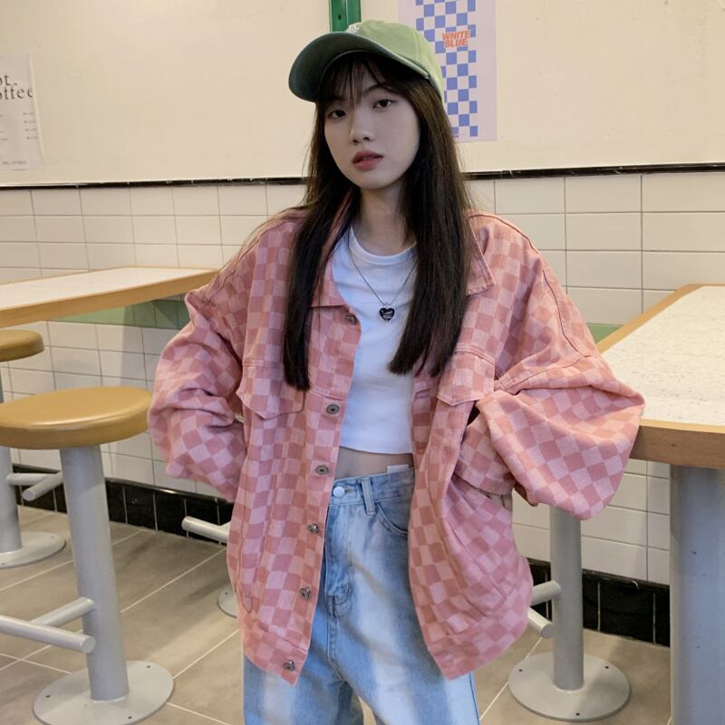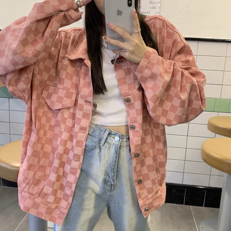 スタンダード格子柄ジャケット ルーズスプリングオータムレッドトップス レトロ 春物 秋物 試着室2016730851