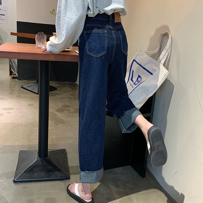 ダークブルージーンズ スプリングオータムルーズパンツ ハイウェスト薄手 春物 秋物 試着室31811691275