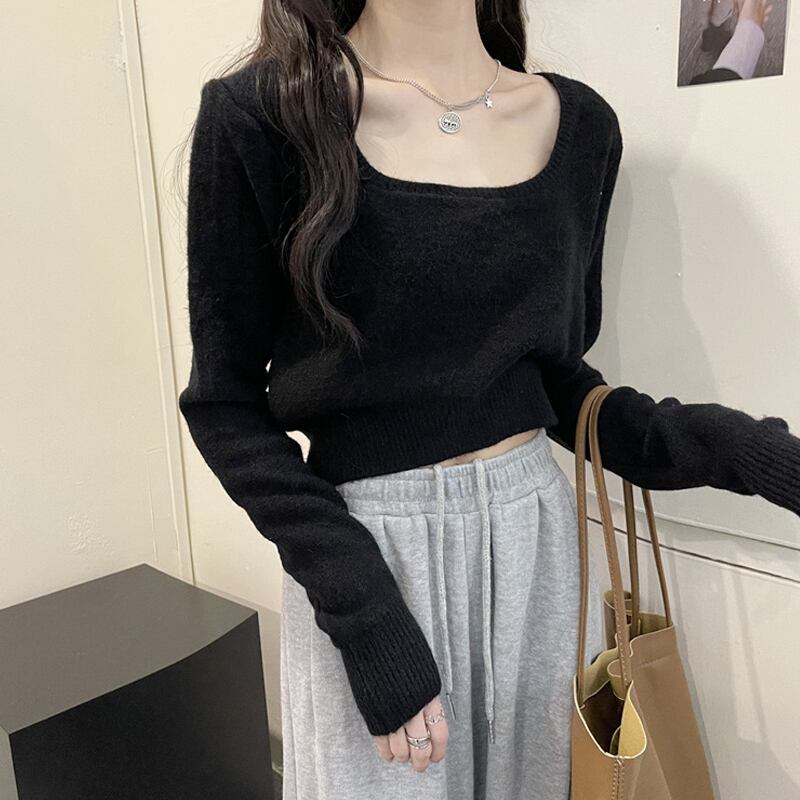 スタイルセーター スプリングオータムカラーショートトップス ロング 春物 秋物 スクウェア 試着室6835612107