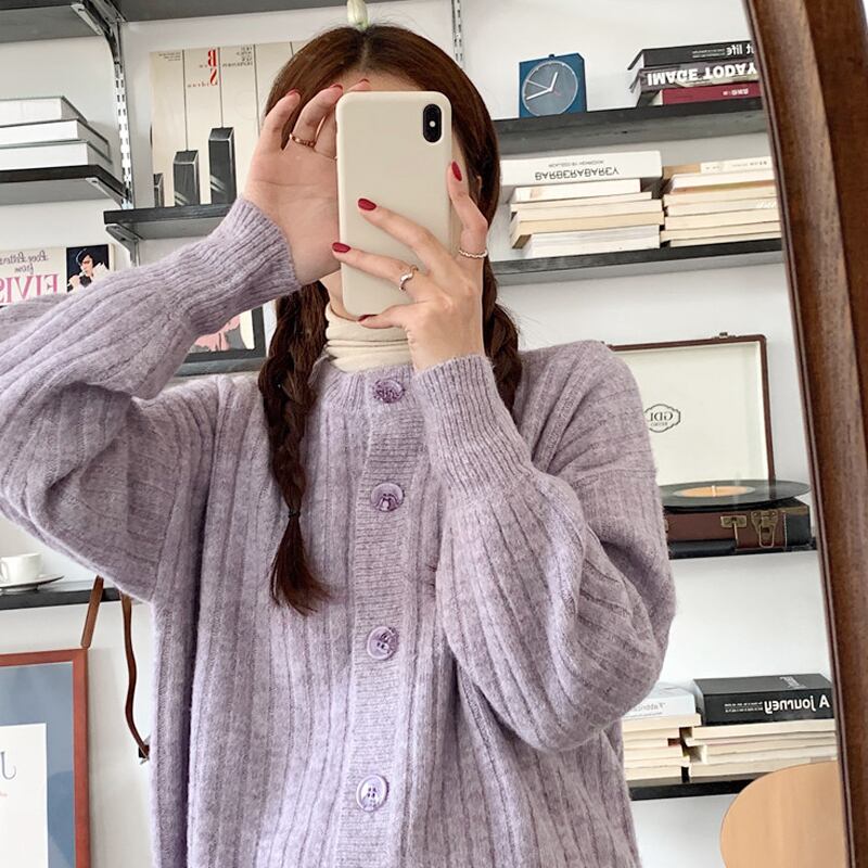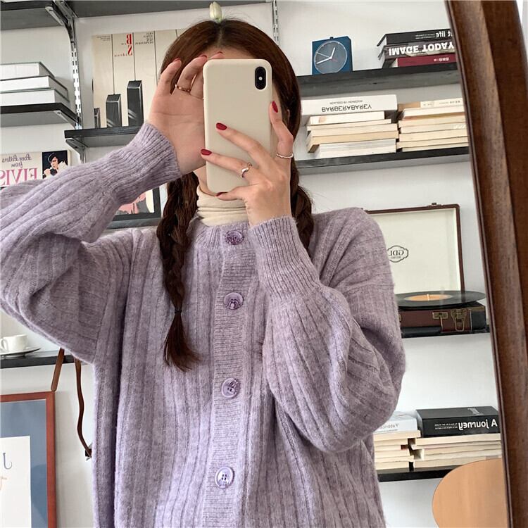 セーター ジャケット スプリングオータムスタイルスタンダードルーズニットカーディガン レトロ 春物 秋物 パープル 試着室28467867141