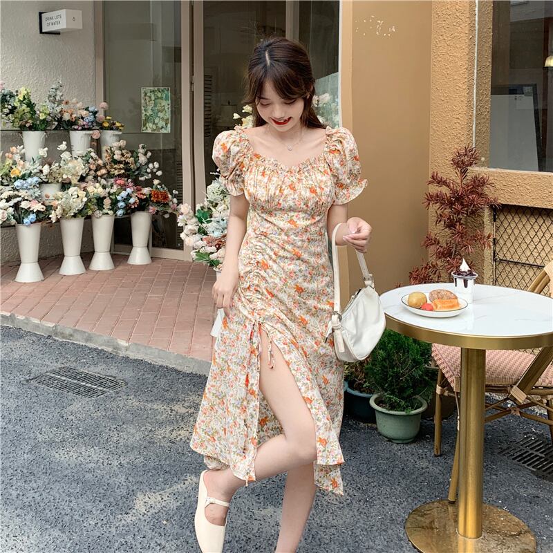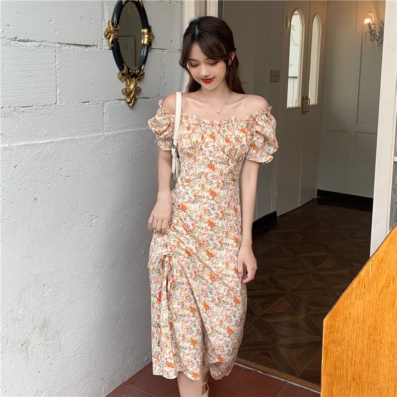 スリーブフローラルドレス サマースカート 夏物 花柄 フラワーデザイン 試着室93245510555