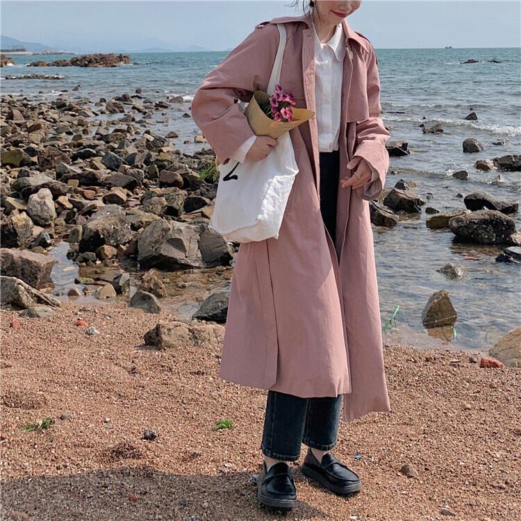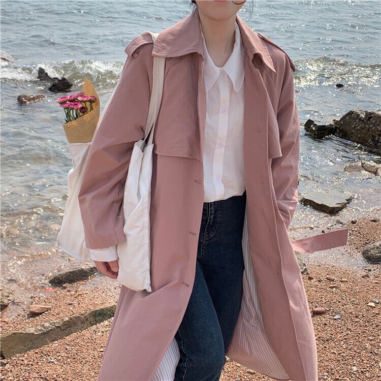 スプリングオータム薄手ジャケット コート ピンク 春物 秋物 試着室10597500529