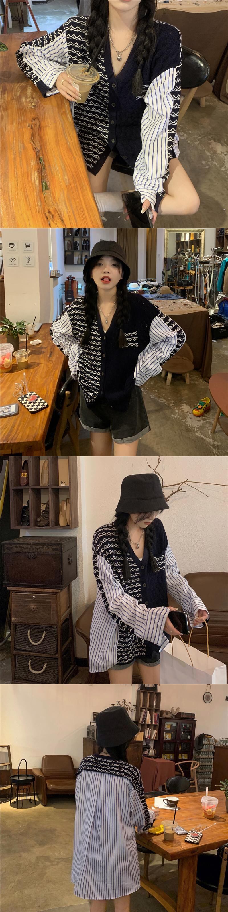 シャツ ジャケット スプリングオータムスタンダードスタイルVネックトップス ロング レトロ 春物 秋物 試着室89764842068