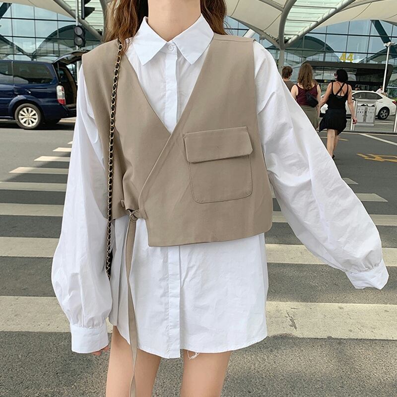 色:ブラックベストワンピース,グレーベストシングルピース,カーキベストワンピース,白いシャツのワンピース