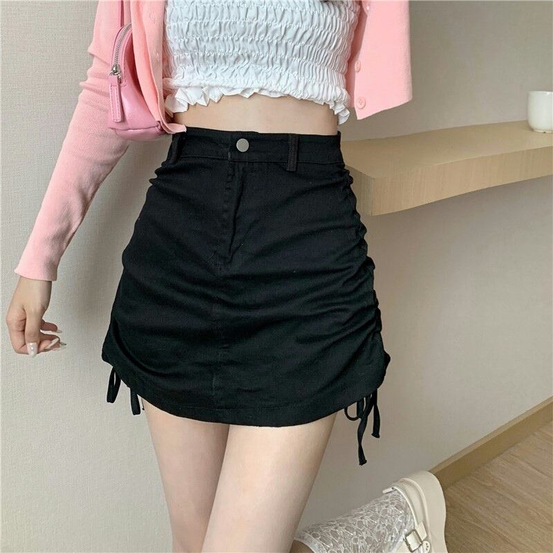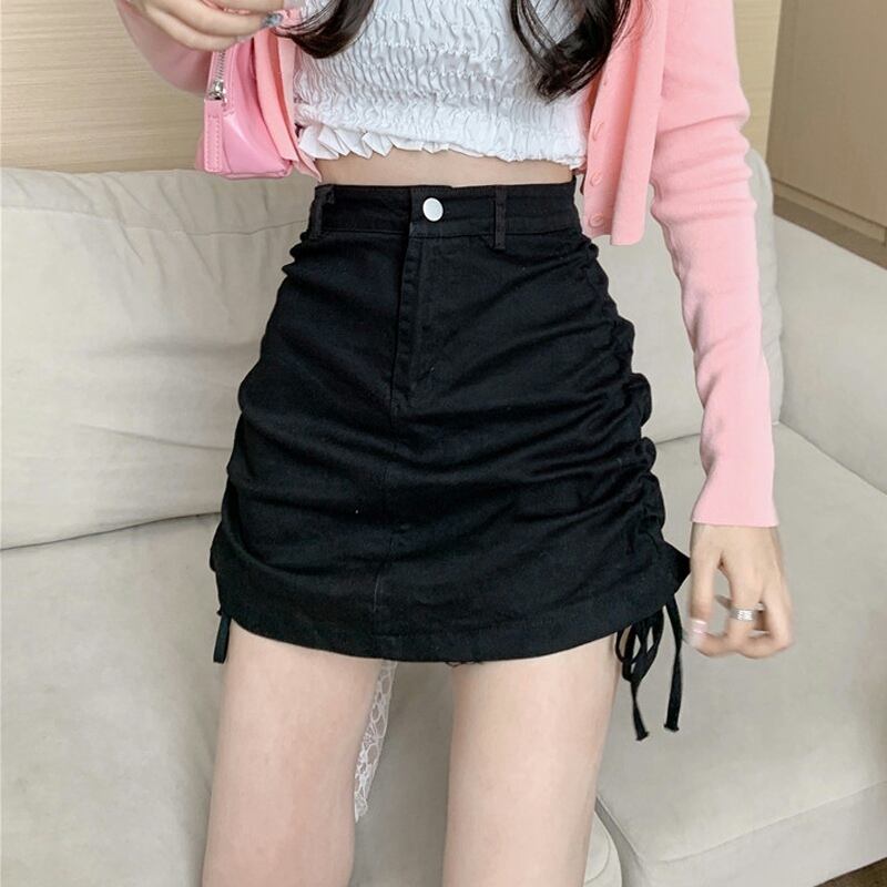ブラックスカート ハイウェストウェストAラインサマーショート 大人ガーリー スウィート キュート カジュアル 夏物 試着室38207929482