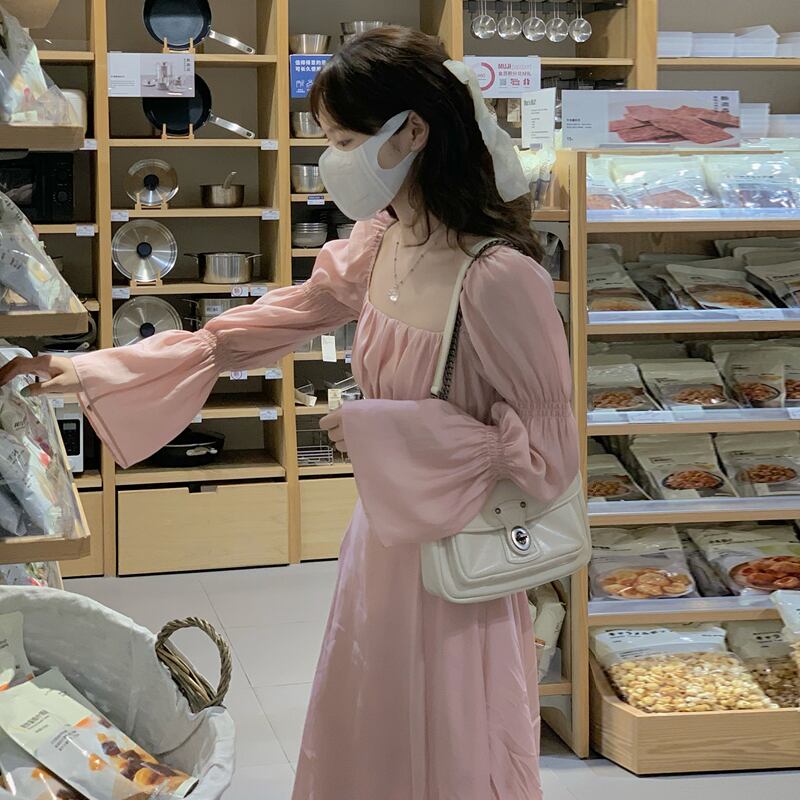 ロングドレス スプリングオータムホルタースカート ピンク 春物 秋物 スクウェア 試着室84653427069