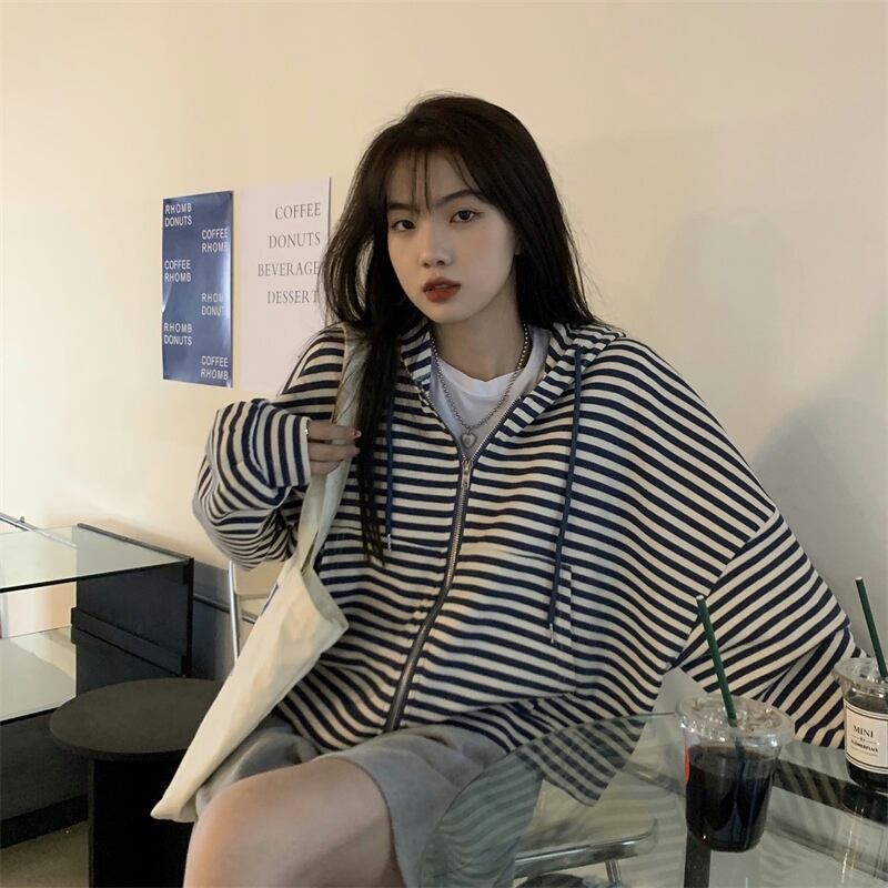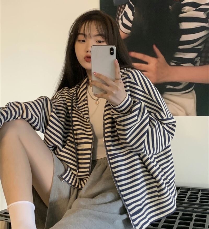ストライプセーター コート スプリングオータムルーズフード 春物 秋物 試着室47317102562