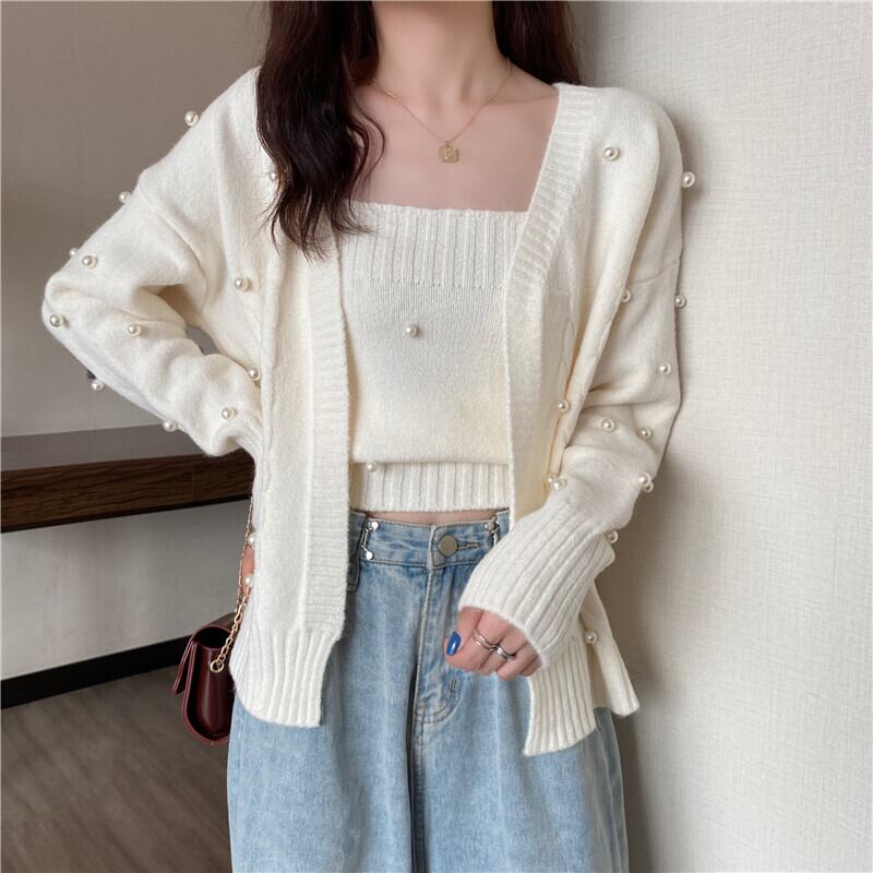 ホワイトセーター コート スプリングオータムスタイルニットカーディガン 春物 秋物 試着室23458770362