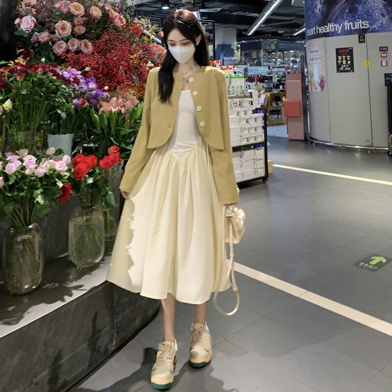 色:カーキワンピース,アプリコットスリングスカートワンピース