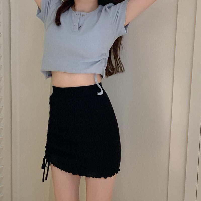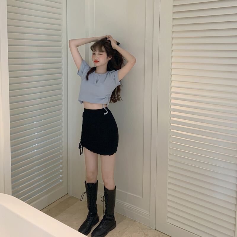 ショートTシャツ サマーハイウェストギャザー 夏物 試着室88397964736