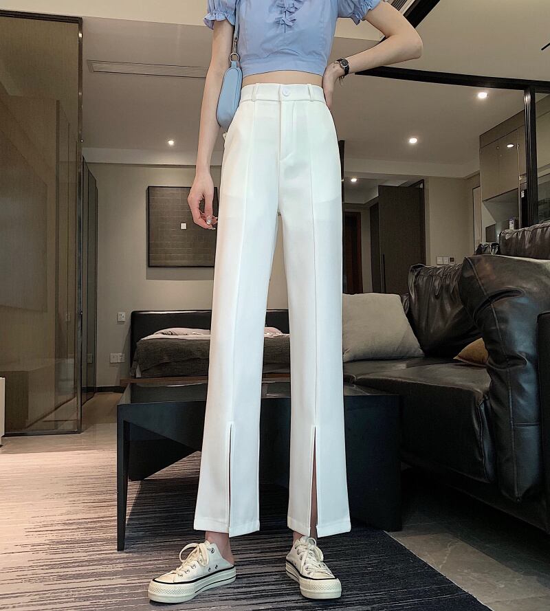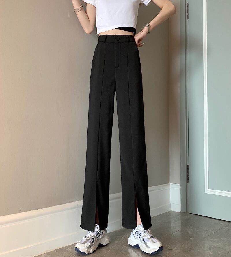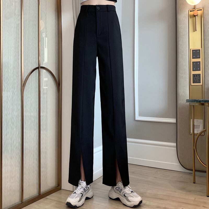 ブラックパンツ スプリングオータム薄手ハイウェストウェストルーズカジュアル 春物 秋物 試着室85190405265