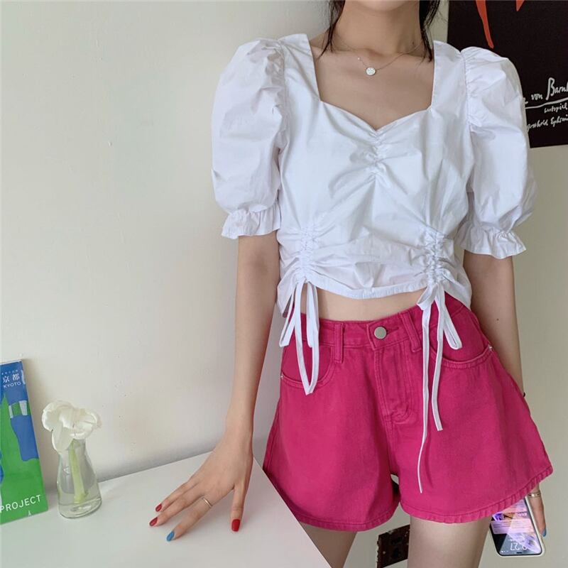 スリーブカラーシャツ サマーショートスタンダードブラウス レトロ 夏物 スクウェア 試着室92539759803