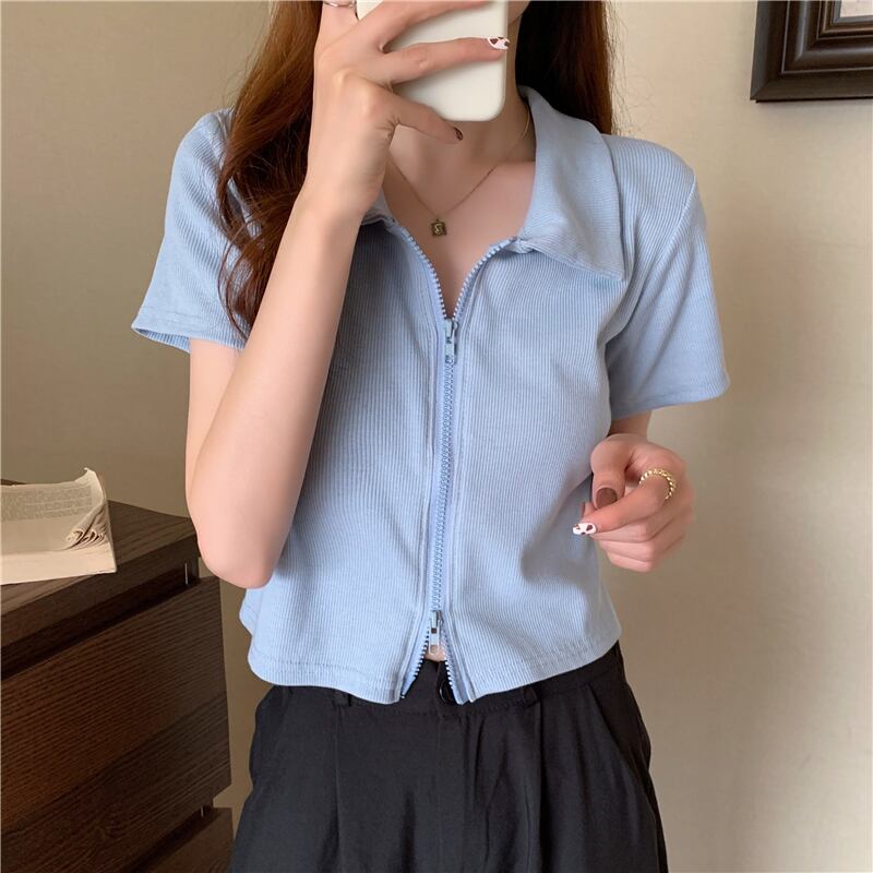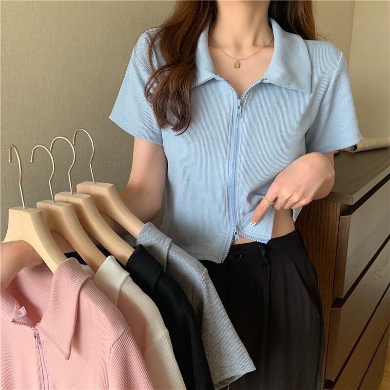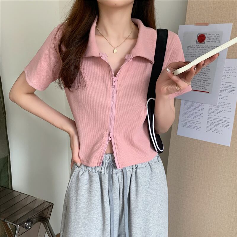 ショートTシャツ サマーレッドジッパー 夏物 試着室62312647692