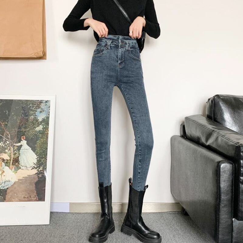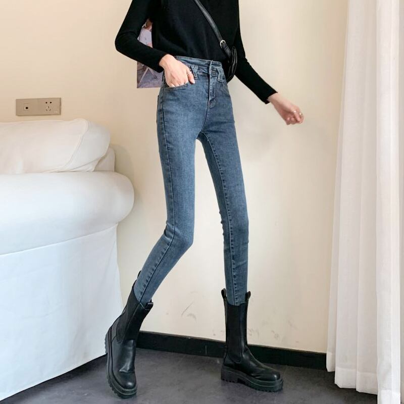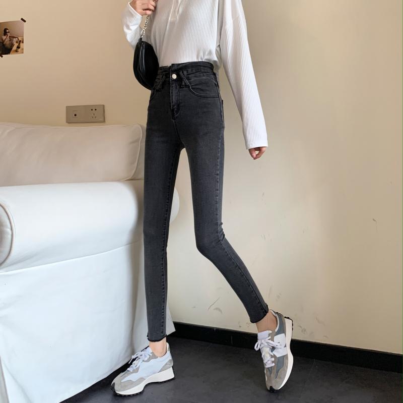 薄手ハイウェストジーンズ スプリングオータムパンツ 春物 秋物 試着室14920535612
