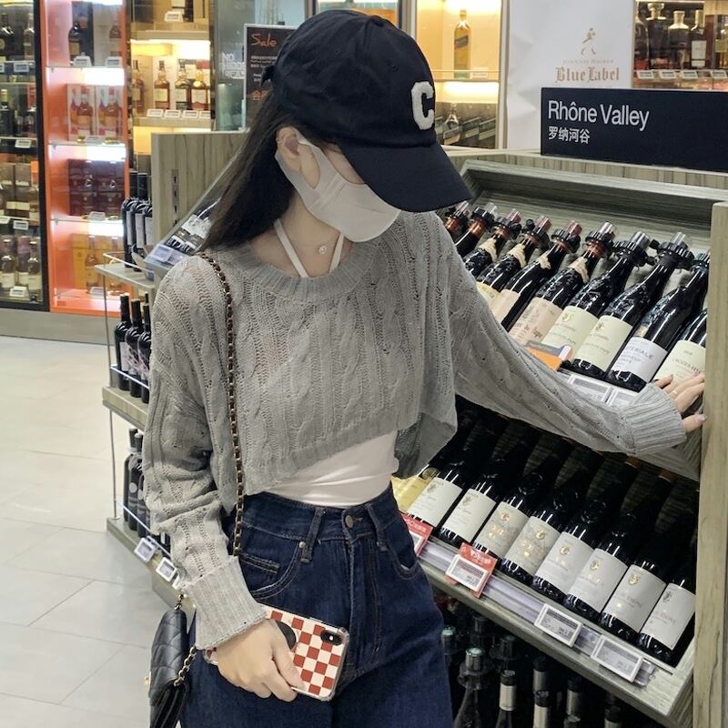 グレーニット スプリングオータム薄手セーター ブラウス ショートトップス 大人ガーリー スウィート キュート カジュアル 春物 秋物 試着室22642858831