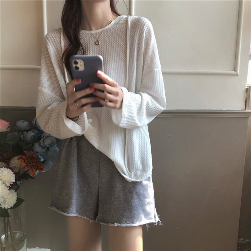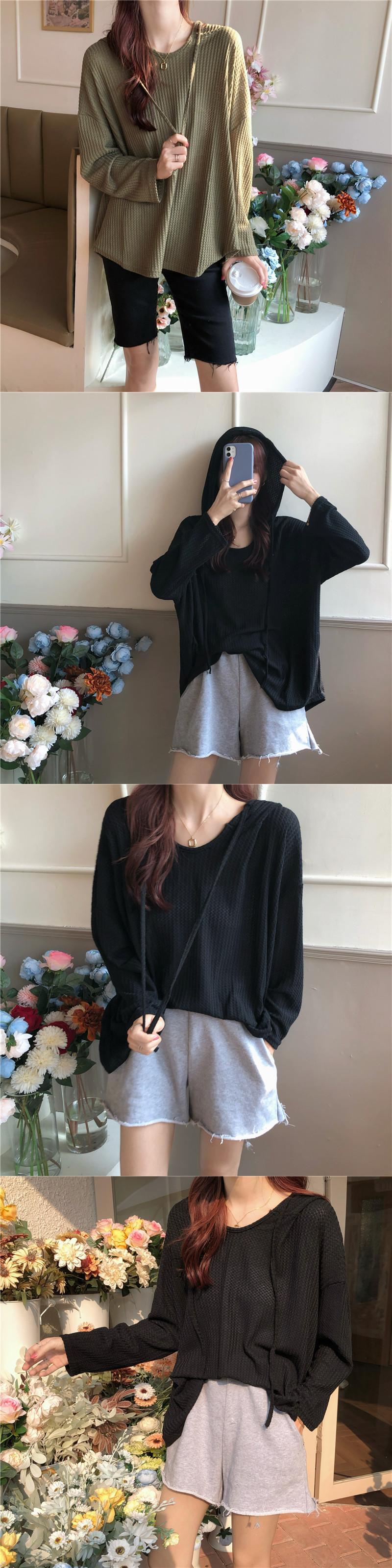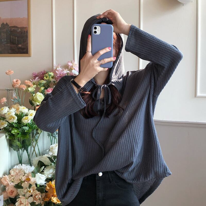 フードTシャツ スプリングオータムルーズトップス ロング 春物 秋物 試着室33091384928