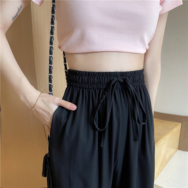 パンツ サマーハイウェストウェストカジュアルルーズレギンス 夏物 シルク 試着室23607284852