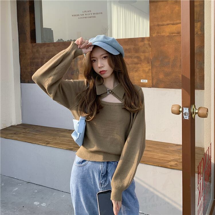 セーター スプリングオータムショートトップス ロング 春物 秋物 試着室90177055002