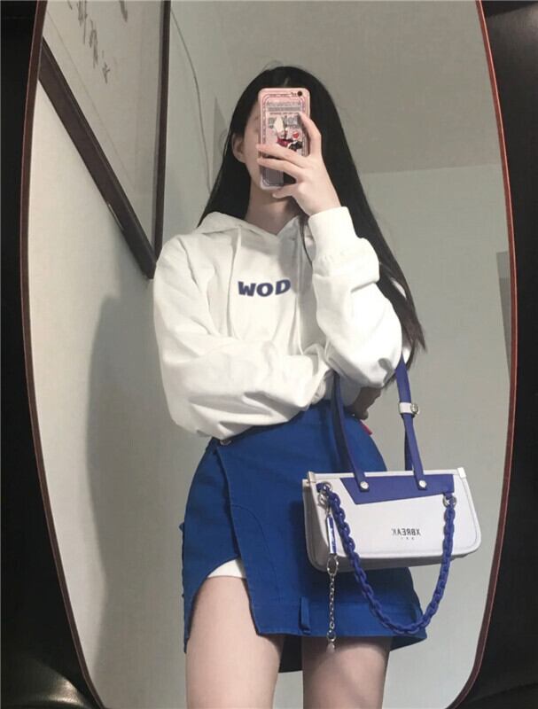 ホワイトフードセーター スプリングオータムルーズスタイル ストリート 春物 秋物 試着室57124895126