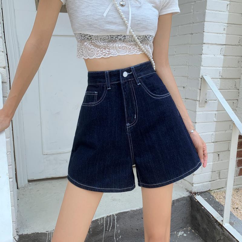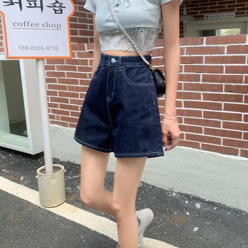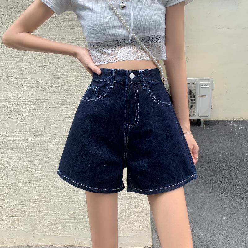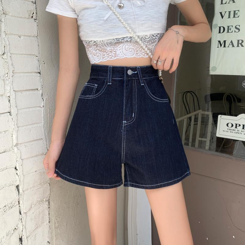 ダークブルーショーツ サマー薄手レッドハイウェストウェストルーズAラインパンツ 夏物 ブルマー 試着室21616082391