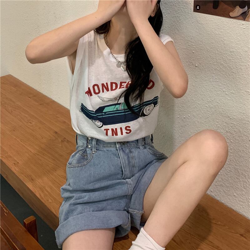 ホワイトレディースサマーノースリーブTシャツ トップス 夏物 試着室64785172083