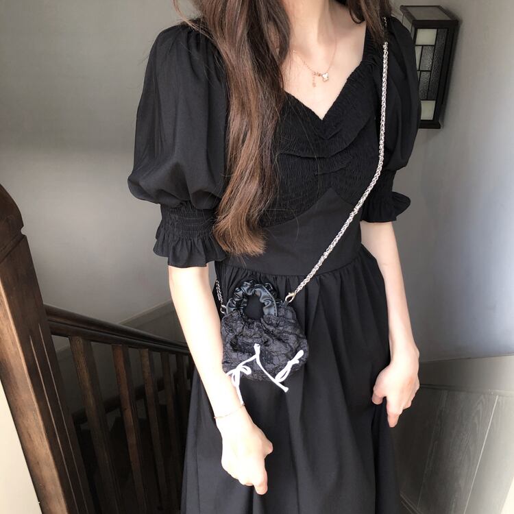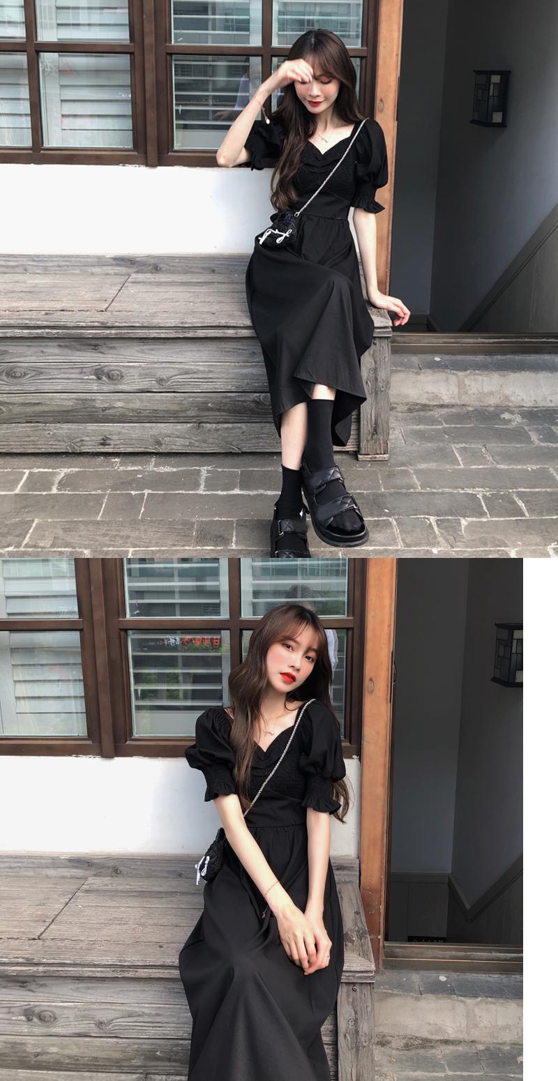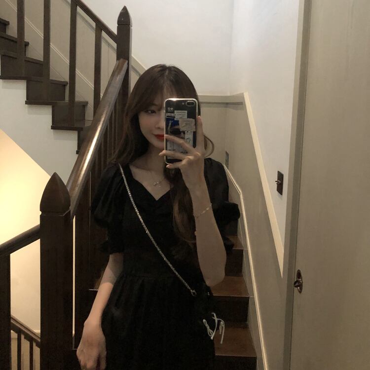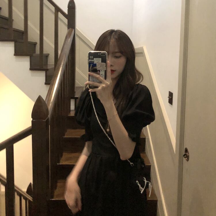 スタイルブラックドレス サマースタンダードロングスカート レトロ 夏物 試着室75815546465