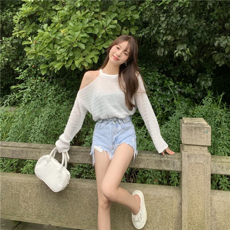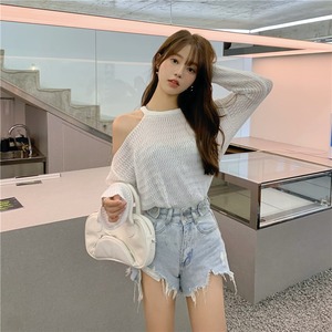 ホワイトストラップレスTシャツ スプリングオータムルーズトップス ロング 春物 秋物 試着室63410840463