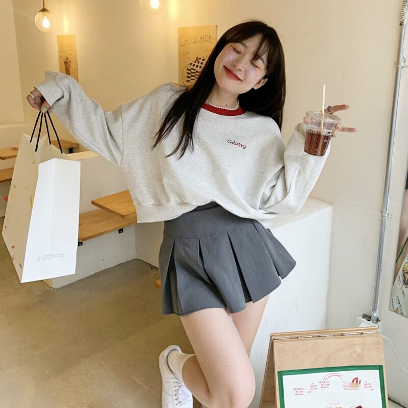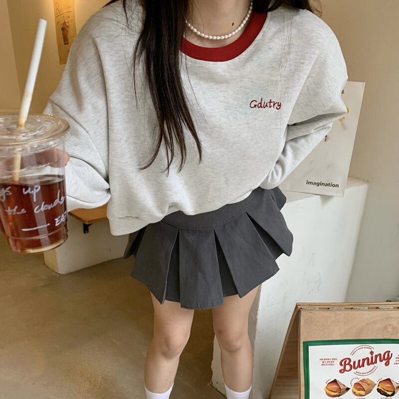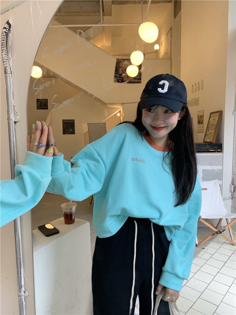 ブルーセーター スプリングオータムルーズラウンドネックトップス ストリート 春物 秋物 Oネック 試着室4879270454