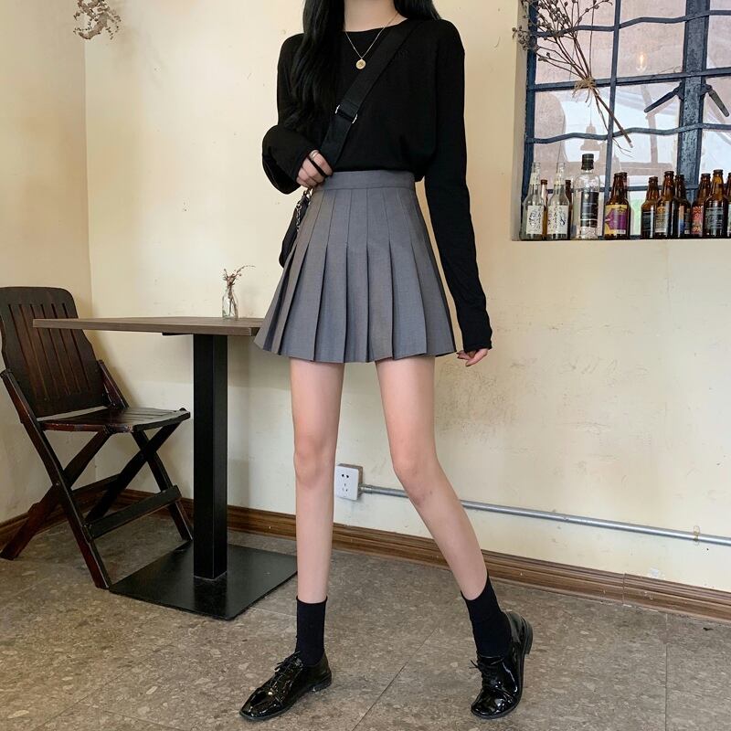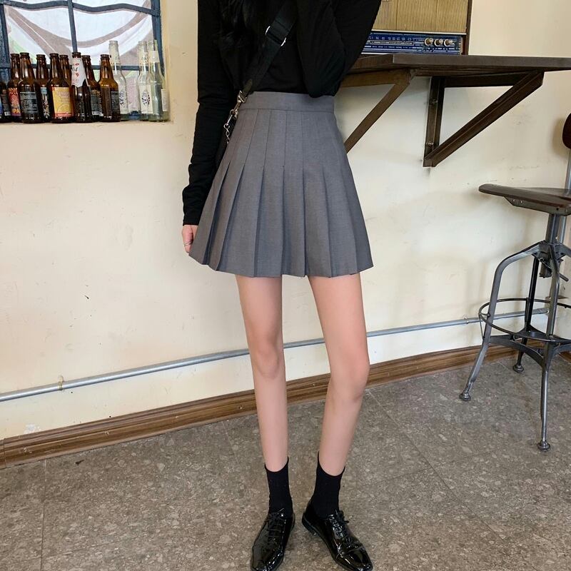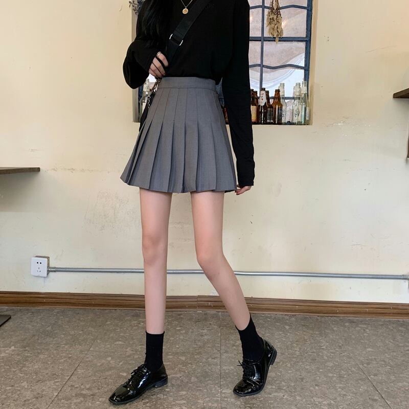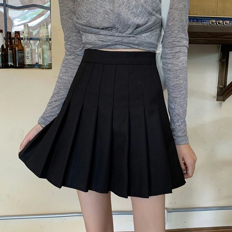 ブラックプリーツスカート スプリングオータムハイウェストウェストAラインショート 大人ガーリー スウィート キュート カジュアル 春物 秋物 試着室11395358722